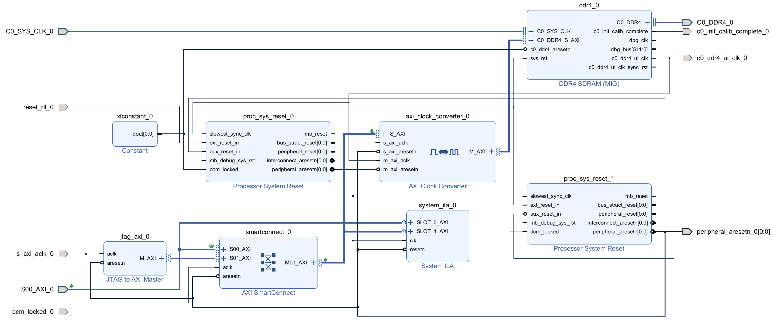 - 作用:将系统逻辑和 JTAG to AXI Master 连接至 DDR4 控制器的 AXI 总线。