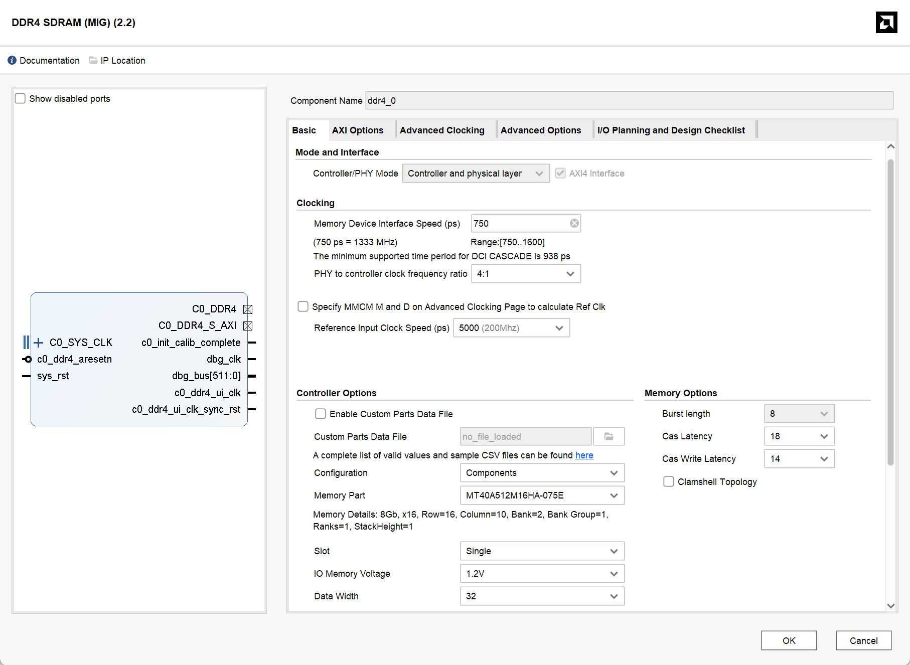 AXI4 Interface。 - Memory Part (颗粒型号):