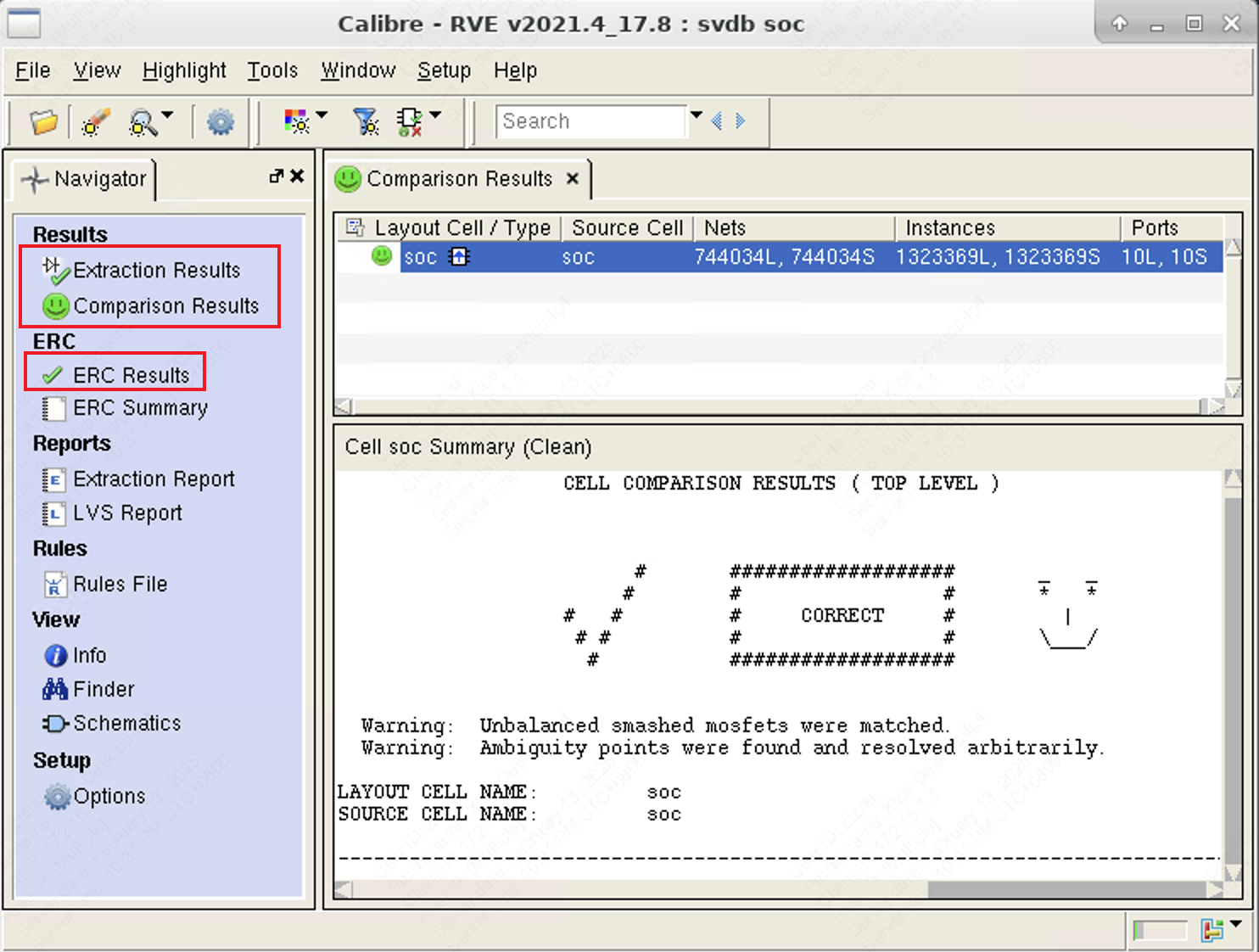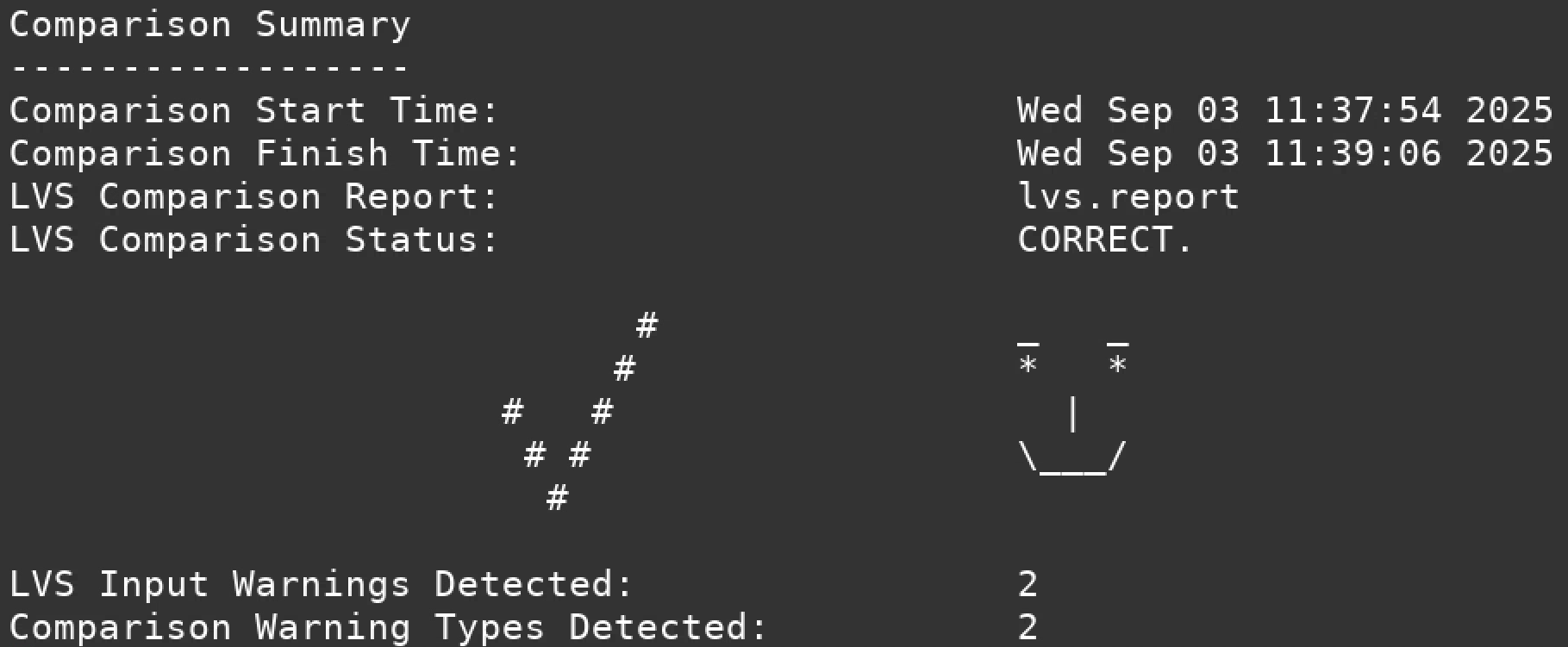 一个通过 LVS 物理验证的 GUI 界面如下。