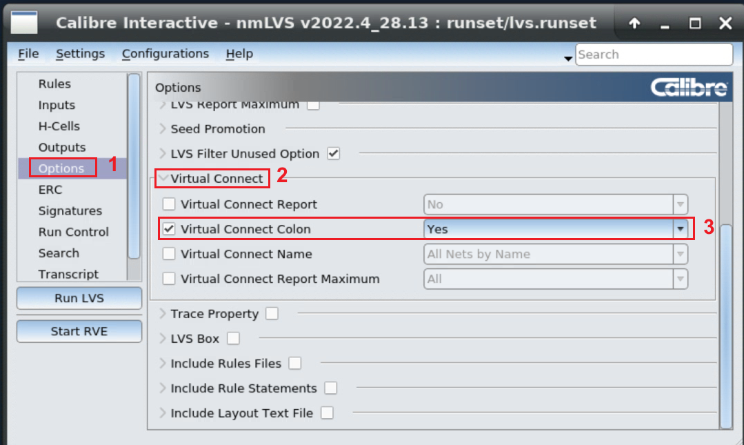 在 Calibre Interactive 上方菜单点击 Setup(如下图 1 所示),并勾选 LVS Options,然后就可以看到具体的选项了 :)