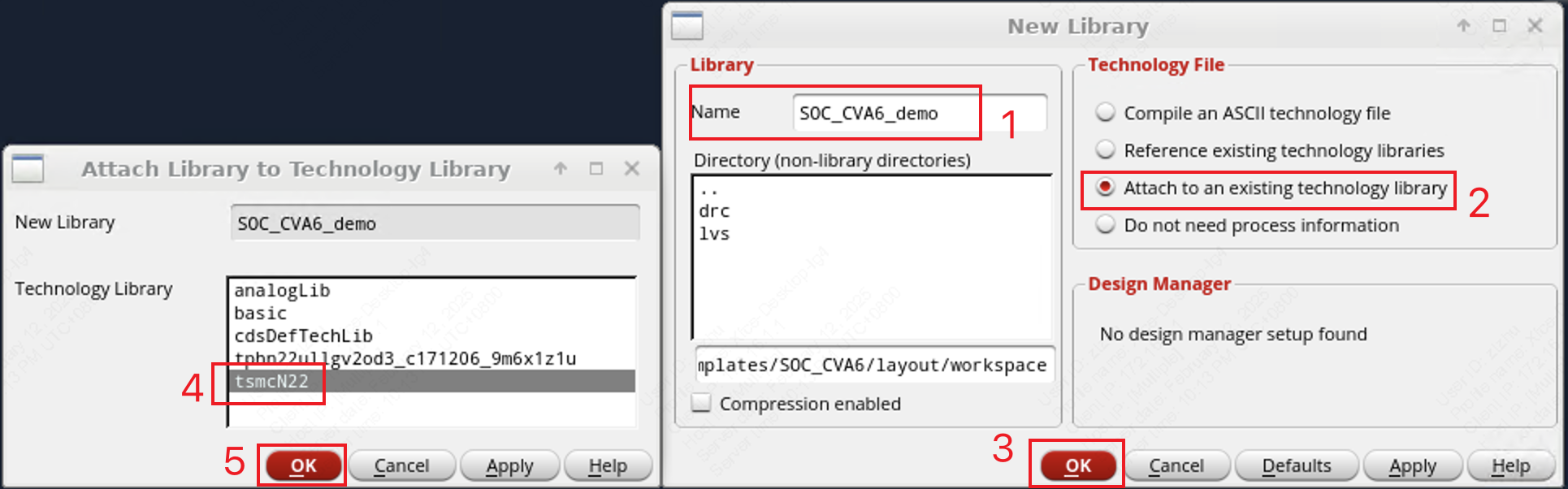随后,输入该 Library 的名字,并选择 Attach to an existing technology library。对于 TSMC 22nm 的流片,选择 tsmcN22,如下所示。