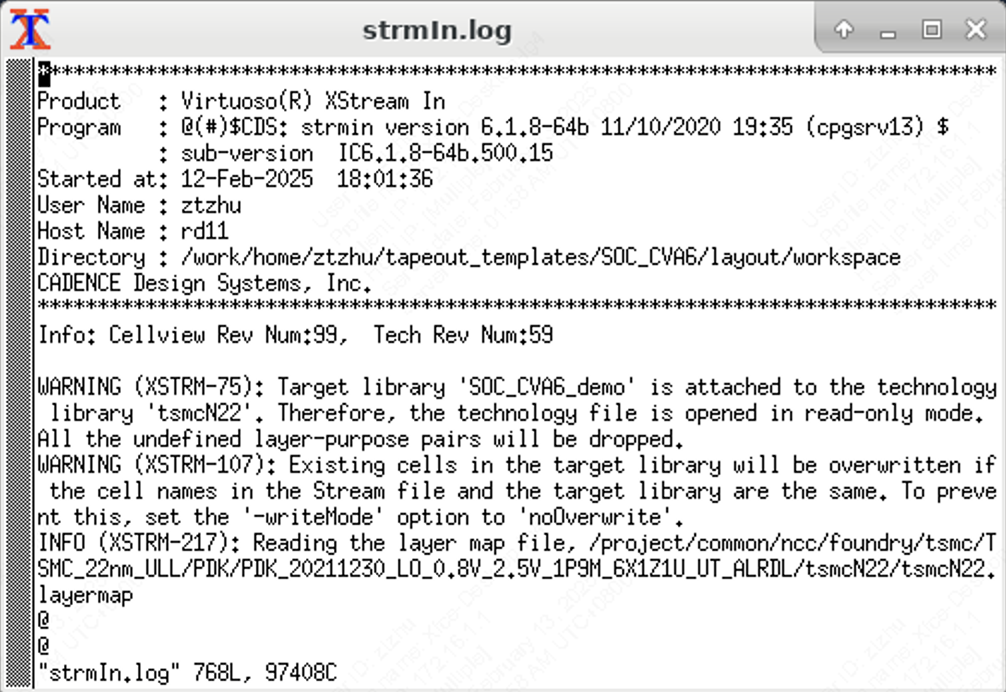 若首次打开 Virtuoso,需要将 Innovus 完成的设计导入到 Virtuoso 中。