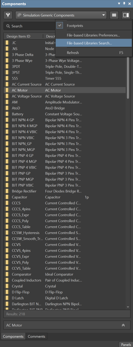 - 在右下角的 Panels 中把 Components选中,选择 File-based Libraries Preferences