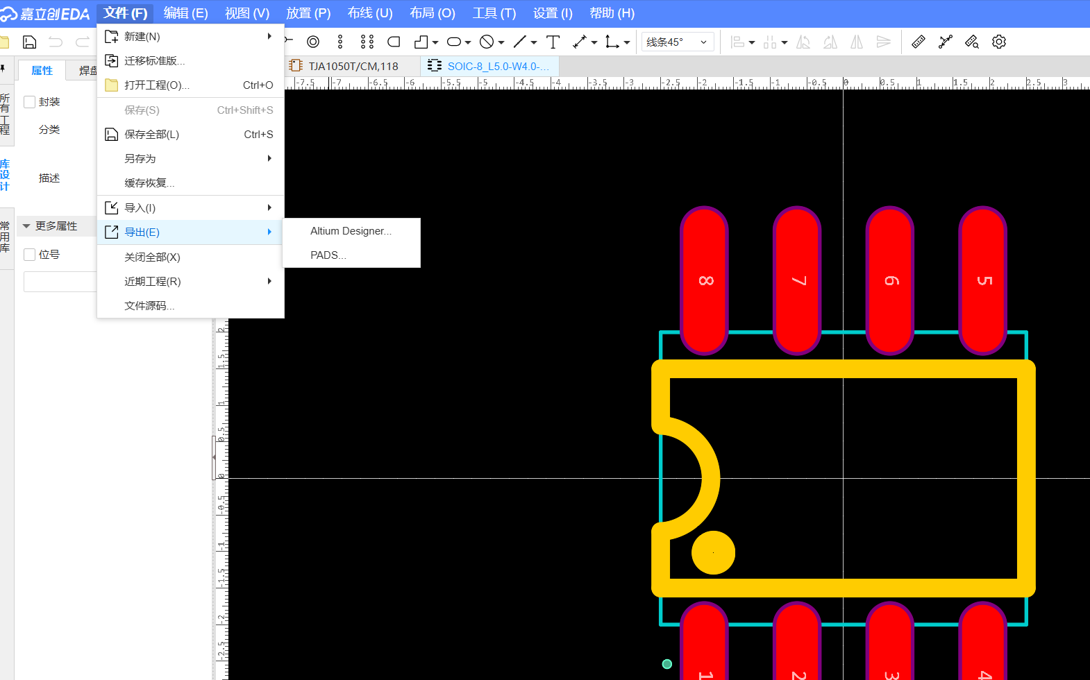 如果元件库中没有想要的元件,需要自行添加,常用的方法是通过立创商城添中找到它,点击数据手册,在网页版嘉立创中打开它的封装,导出他的 Schematic 与 Footprint 为 Altimu Designer。