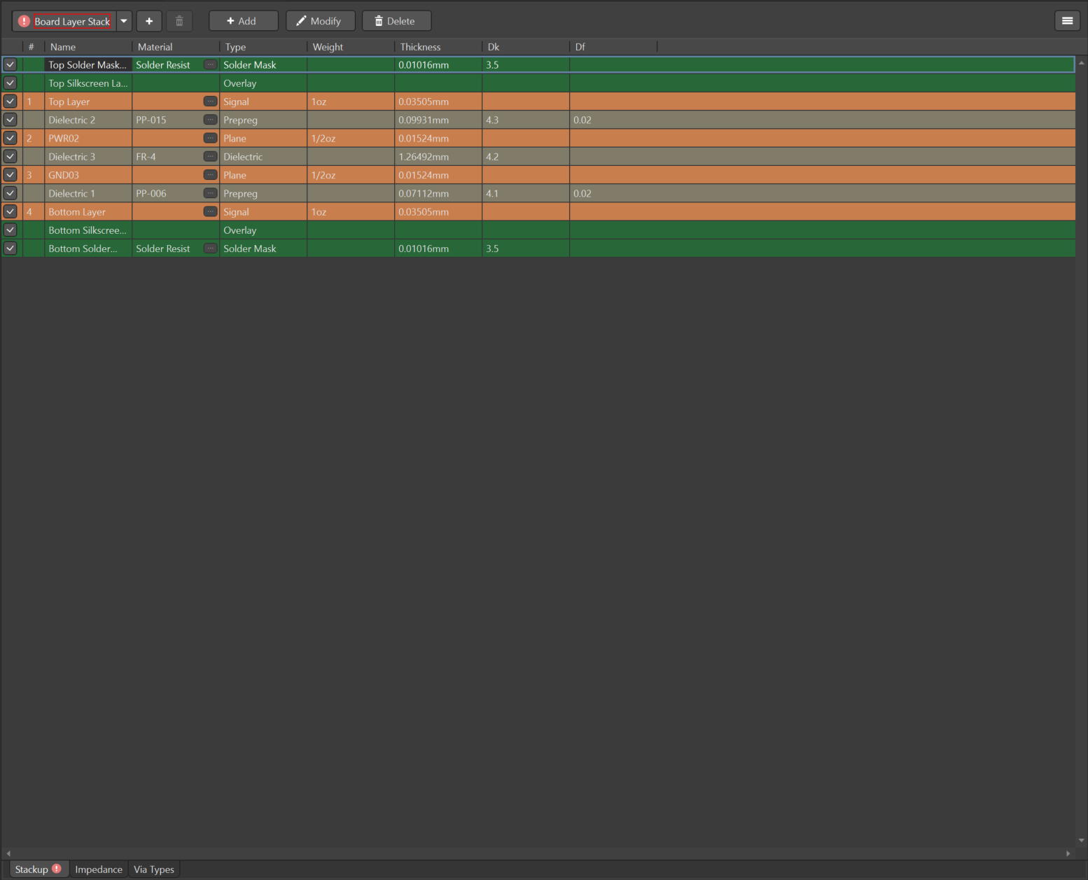 - 修改 PCB 层数(Design -> Layer Stack Manager)。