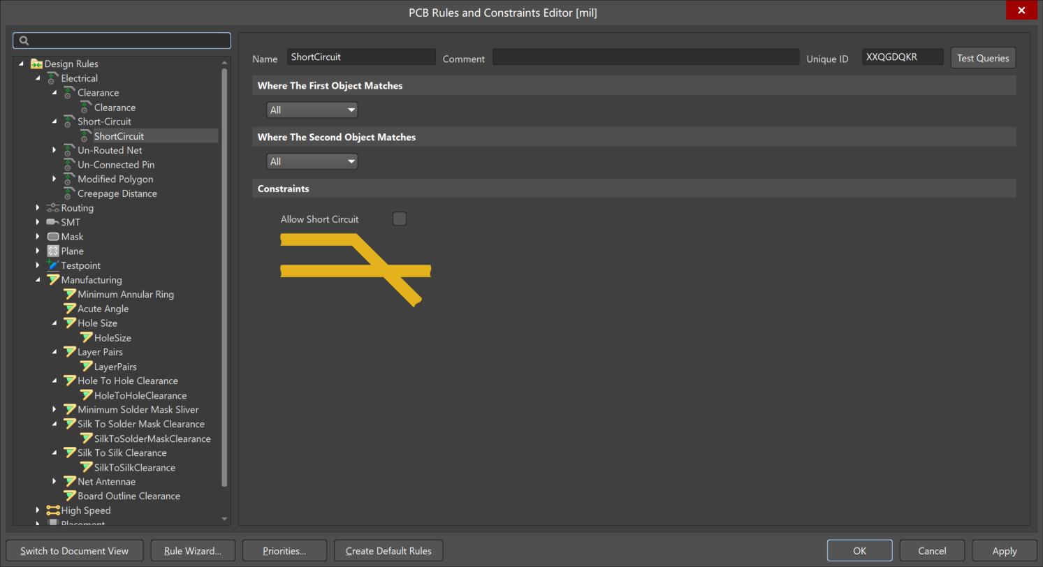 - 修改Electrical-Short Circuits,勾掉 Allow Short Circuit。