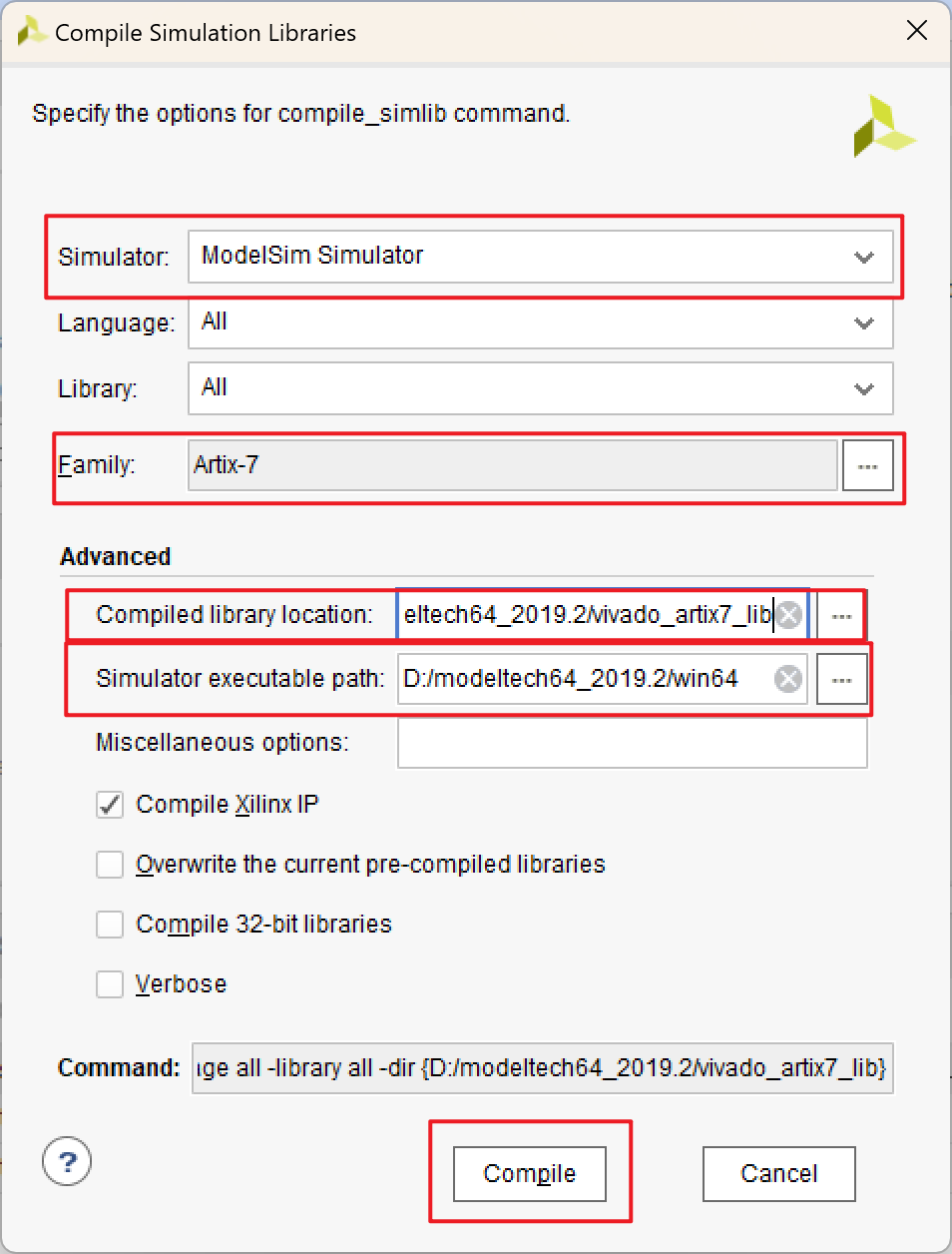 Vivado 窗口中选择 Tools -> Compile Simulation Libraries