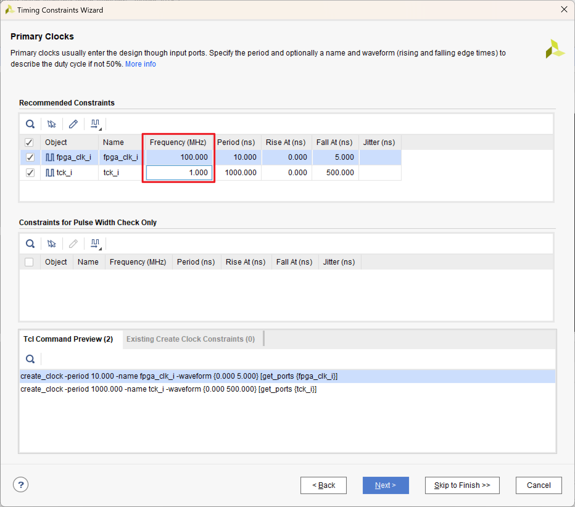 Vivado 会根据综合结果识别出设计中的输入时钟信号: