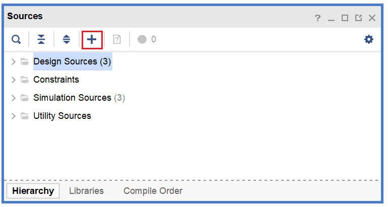 完成工程创建向导之后即可进入 Vivado 主界面。在 PROJECT MANAGER -> Sources 添加 RTL 代码。
