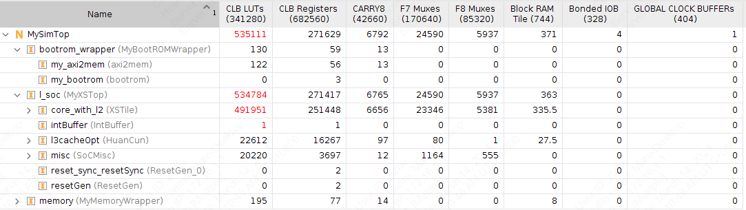 在出现 LUT 的资源占用过多的情况下,可以考虑将硬件设计中大块的缓存和存储单元用 Vivado 工具提供的 Block RAM IP 核替换,可以避免用 LUT 直接综合,从而减少 LUT 的利用率。